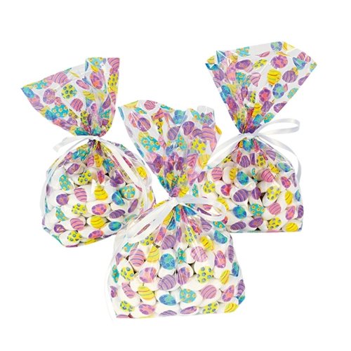 - Cellophane bags have Easter egg designs