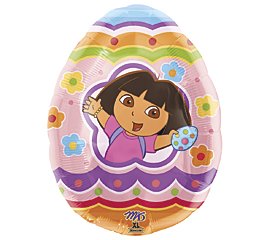 - Design: Decorated egg with Dora the Explorer popping out of the center. She is holding a blue egg with polka dots all over it.